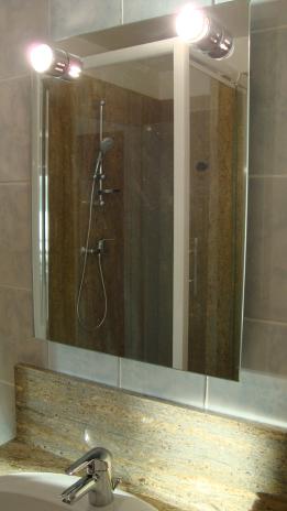 Salle de bain La douche et le lavabo sont habillés de granit. |